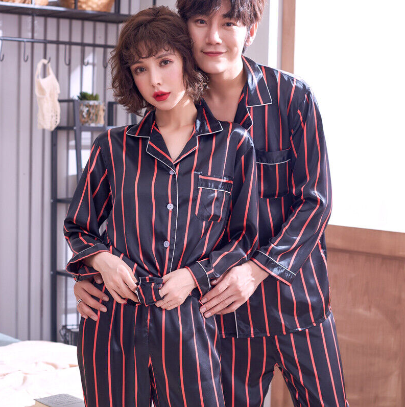 Womens Mens Silk Satin Pajamas Sets Sleepwear Long Sleeve Pyjamas Nightwear Soft